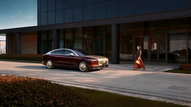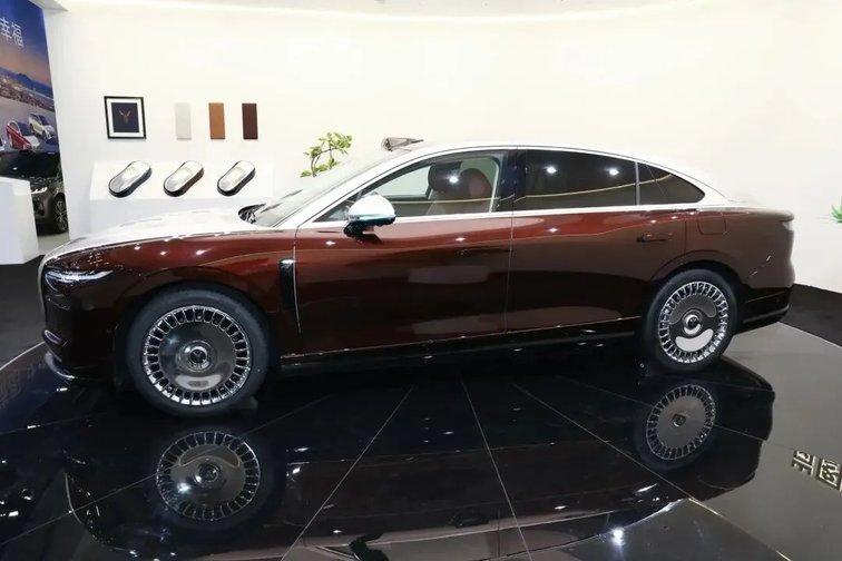 车身侧面,采用“昂首凌云”的动感设计,配合流畅的车顶线条,呈现出优雅姿态。而隐藏式门把手则彰显其新能源身份。20英寸的密幅轮圈让侧面凸显行政感,符合该级别应有的气势。