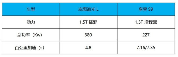 动力我们对比插混版和增程版,岚图追光L是插混,动力更强。1.5T发动机,双电机四驱,前后电机总功率380千瓦,系统总功率最大可达485千瓦,前后总扭矩695Nm,零百加速4.8秒。享界S9搭载1.5T增程器,单电机后驱,最大功率227千瓦,最大扭矩320Nm。零百加速7.16秒/7.35秒。优势自然给到了岚图追光L。