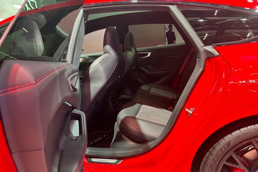 从本质上讲,红运限定版是在指导价28.39万元的“40TFSI quattro 尊享型”基础上,进行了一次深度个性化改装。约2.5万元的差价(指导价对比),换来的是一套视觉效果拉满的装备:专属的竞速红或飓风灰车漆、20英寸RS曜黑轮圈、竞速曜黑尾翼、车内竞速红安全带、数字投影灯、Microfiber超纤绒与红色缝线组合的内饰、碳纤维饰板,以及一体式运动座椅和带高端头枕音响的B&O音响系统。简单说,可以理解为用约1万元的限时升级费用,获得了价值更高的专属配置包。