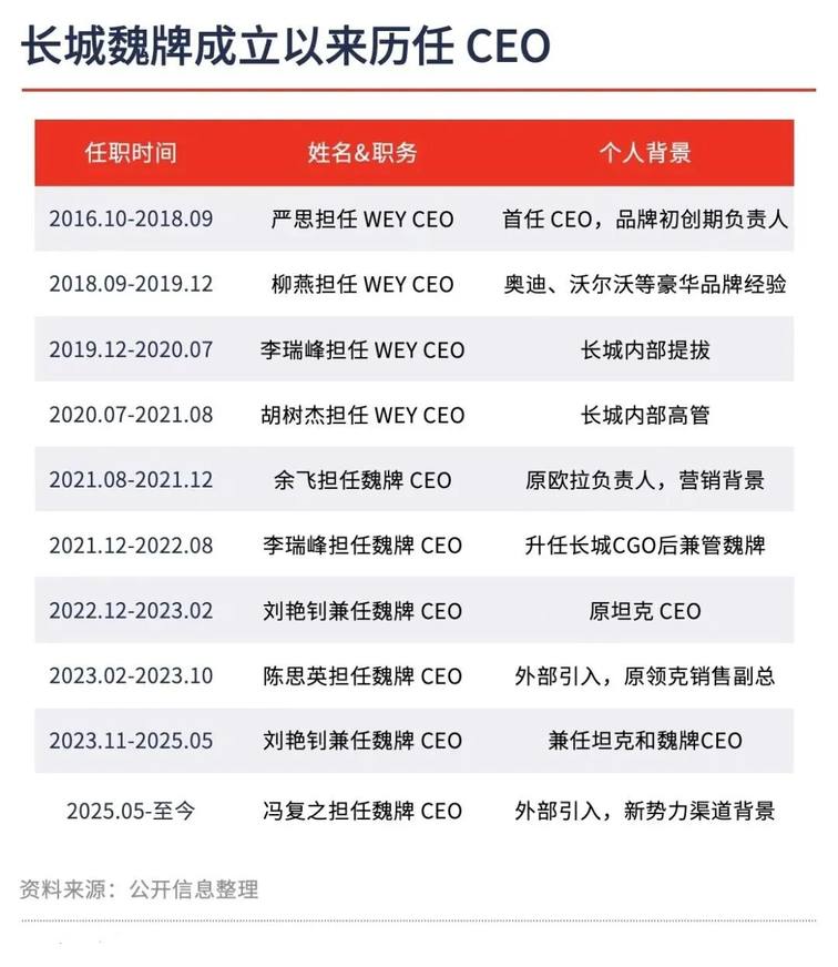 据晚点Auto报道,长城旗下魏牌CEO冯复之本周未到岗,处于“休假”状态。