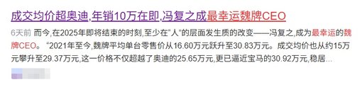 网传冯复之以前曾提出过离职但被驳回。因其在任期间推动魏牌销量同比增长93%(1-11月累计约8.9万辆),并提升品牌均价至超30万元水平。