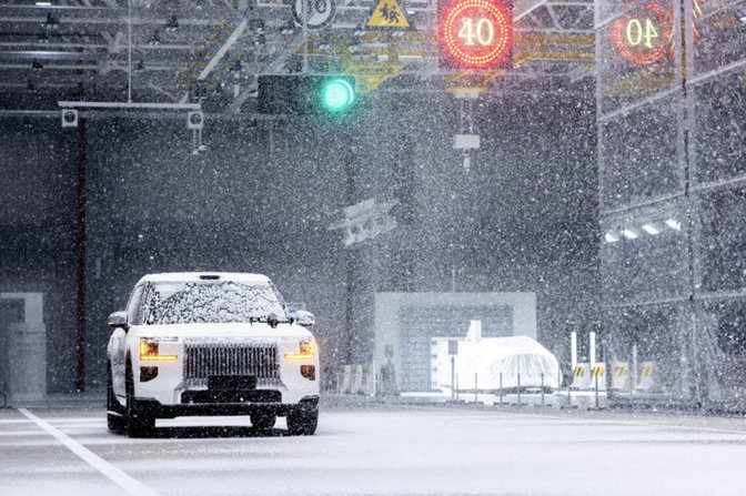 要确保汽车在全球任何角落都安全可靠,就必须接受极端环境的考验。中心内“全球最大的汽车环境风洞试验室”正是为此而生。它最高可模拟海拔5200米的稀薄空气、-40℃至+60℃的极端温度,以及从5%到95%的相对湿度,堪称一个气象“魔法盒”。无论是测试车辆在青藏高原的动力与热管理表现,还是在热带雨林或极寒地区的电池与空调系统可靠性,都能在此完成。特别值得一提的是,它还是全国首个可实现-20℃~0℃低温环境下精确控制湿度并模拟阳光照射的风洞,对于验证车窗除雾、传感器在寒冷潮湿环境下的性能至关重要。