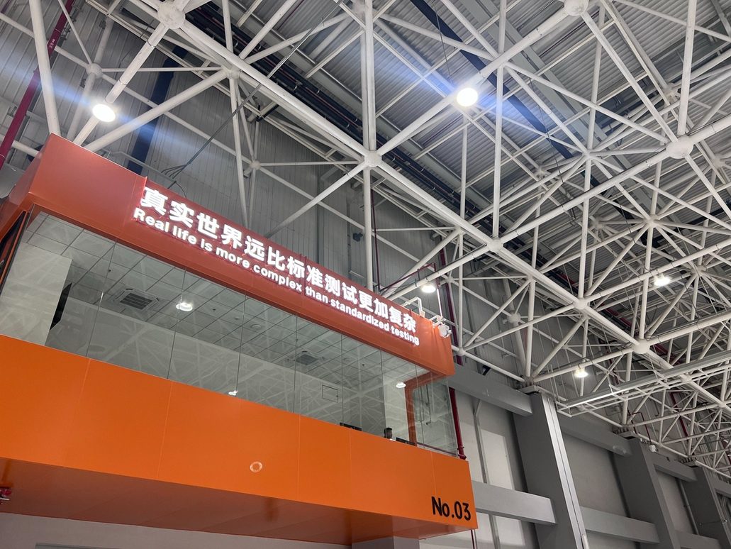 第四,是“全球最大的任意角度汽车碰撞测试区”。通过一个可实现0–180°无级调整的碰撞区域,叠加无柱扩展区,可以做新能源车底部刮底后翻滚、碰撞后翻滚、带辅助驾驶的多次碰撞等综合测试。