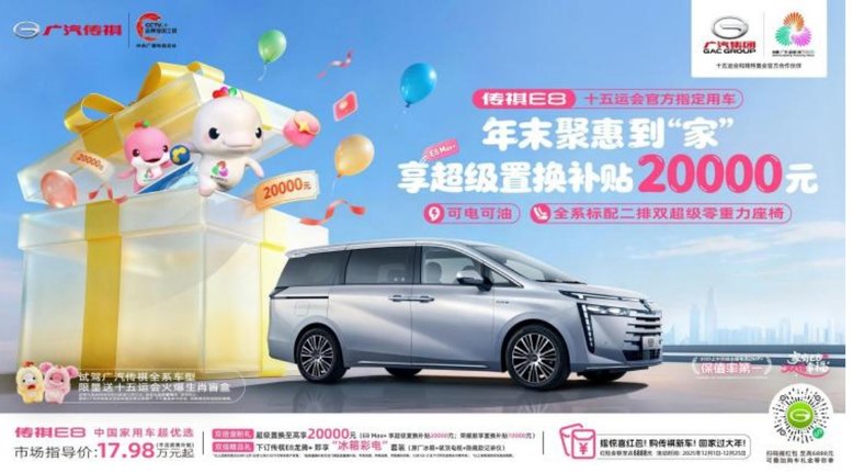 年关将至,为感恩回馈广大消费者,广汽传祺MPV专家超级置换季推出多重年终限时礼遇:下订传祺E8 MAX+版本,享全品牌置换补贴20000元,E8荣耀系列享置换补贴10000元,下订E8龙腾+可免费升级“冰箱彩电”套装;即日起至12月25日,购传祺全系车型可参与扫码摇红包,至高可得6888元购车红包;即日起至12月31日,线下到店试驾更可获十五运周边盲盒,年终购车福利多多,正是入手好时机!