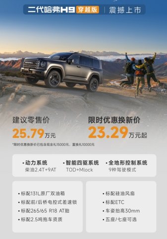 哈弗H9系列车型的每一个版本都是坚守越野内核,基于用户需求开发,全面覆盖城市家用、极限越野、长途穿越等多元场景。日前,二代哈弗H9穿越版上市,仅23.29万元起。