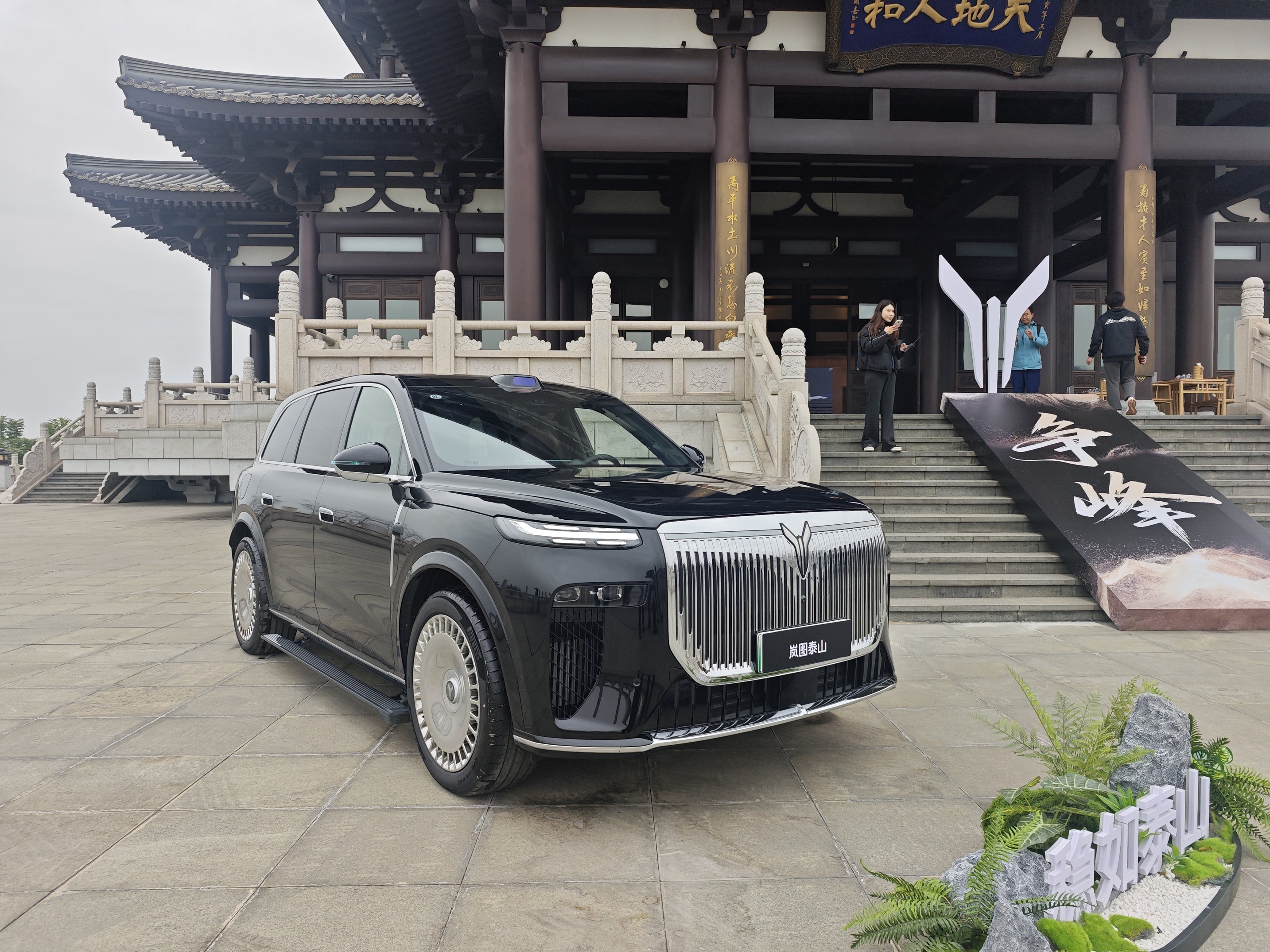 设计层面,岚图泰山以“天地共雅”美学为基底,车身比例遵循“四大黄金分割”,前脸“穹岳”格栅、尾灯“峰峦”折线均源自泰山十八盘与日出云海意象;内饰提取“岱宗青、云海白、岩层灰”三大主题色,并以劳斯莱斯同级工艺的电镀轮毂与悬浮徽标丰富视觉细节。