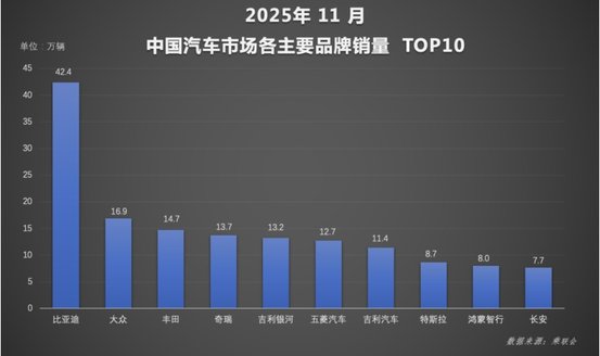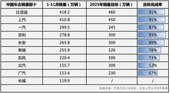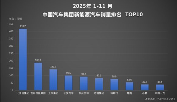从累计数据看,2025年前11个月比亚迪累计销量418.2万辆,同比增长11.3%,年度销量目标完成率超九成。随着12月市场进入冲刺阶段,比亚迪有望超额完成全年目标。