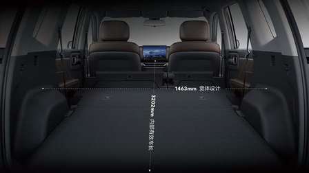 车内空间布局尤为考究:内部有效车长达3202mm,后排1463mm超宽体设计,确保三人同坐依然舒展;前后排座间距达990mm,身高1米8的乘