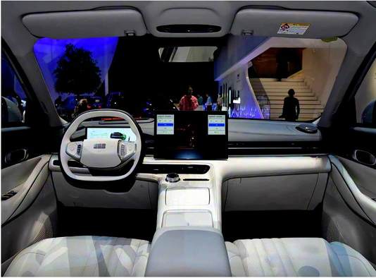 银河E5配备常规W-HUD与中控屏,中控屏同为15.4英寸,搭载Flyme Auto车机,芯片为7nm龍鹰一号,支持车机交互,能满足日常导航娱乐需求,不过少了无麦K歌。