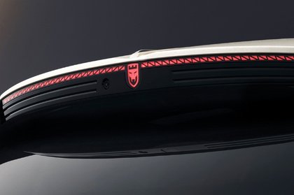 在这款车上,狼标出现在汇聚了空气动力学 能见度和视觉焦点的扰流板顶端,作为高位刹车灯与车尾进行深度一体化共生设计。