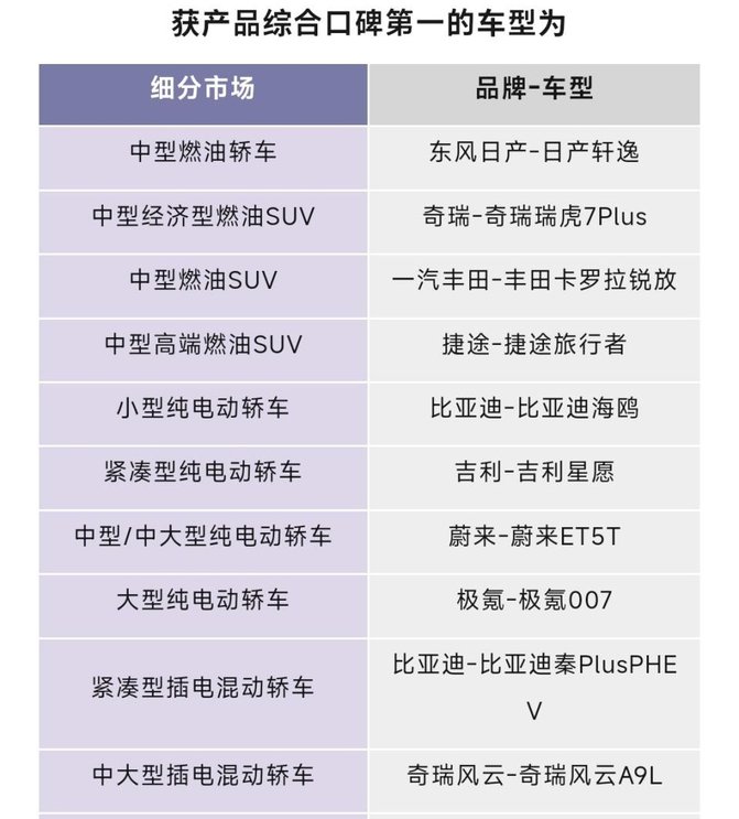 而在产品综合口碑评选环节,奇瑞车型的市场认可度再次得到印证:奇瑞瑞虎7Plus蝉联中型经济型燃油SUV综合口碑第一,奇瑞风云A9L同样斩获中大型插电混动轿车综合口碑第一,实现了质量与口碑的双重领跑。
