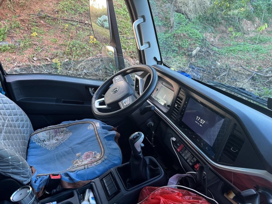 作为天天与车打交道的人,李师傅对德龍G300驾驶体验的评价既细致又务实。"这车的座椅和方向都'调得好'——气囊座椅软硬适中,久坐不累;方向盘轻重合适,窄巷里一把方向过去,精准、跟手。"他还特别提到驾驶室的布局,“储物空间也够用,水杯、工具、单据都有地方放,很实用。"不过说到细节,他也直言不讳:"脚垫上的凸起条纹确实防滑,但在我们这跑,泥巴容易卡在里面,清理起来费劲。要是能做成平整的,或者换个更好清理的设计,就完美了。"