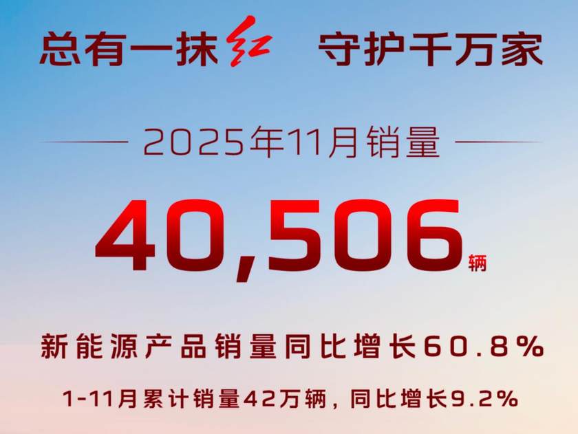 数据显示,11月份红旗品牌单月销量突破4万辆,达到40506辆,同比增长态势稳健。其中,新能源产品成为核心增长引擎,销量同比增幅达60.8%。而随着红旗HS6 PHEV的到来,将会红旗品牌在新能源领域带来更多声量。