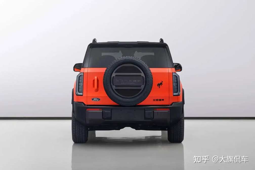 车尾处依旧是保持着方盒子的整体造型,尾门采用侧向的开启方式,并且保留外挂备胎的设计;两侧纵置尾灯组相比燃油版车型更为细长,并且内部光源布局也更为丰富。