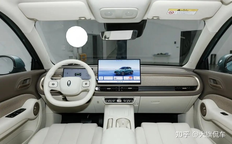 内饰则采用全新的设计语言,车内大面积圆形以及曲线元素应用,带来足够复古的既视感;同时仪表台以及门板处大面积网格织物材质的应用,更加贴合其复古、时尚的车辆属性;标配的15.6英寸车机大屏,内置第三代Coffee OS车机系统,并且系统还接入了DeepSeek语音大模型,整体交互表现更加智能。