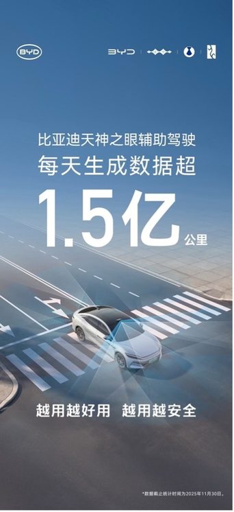 数据显示,截至2025年11月底,比亚迪搭载“天神之眼”驾驶辅助系统的车型累计销量已突破230万辆,持续蝉联中国辅助驾驶车型销量及系统装车量榜首。这标志着比亚迪推动的“全民智驾”战略已取得显著成效,智能驾驶正从高端配置加速向主流市场普及。