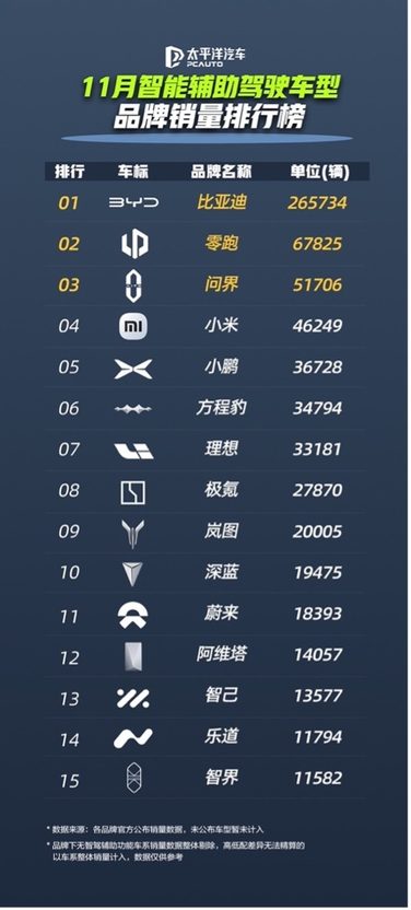 近日,比亚迪公布了其搭载天神之眼辅助驾驶系统的车型在11月的销售数据,全月销量达311267辆,继续引领市场。其中,比亚迪王朝与海洋系列贡献265734辆,方程豹、腾势、仰望等高端及个性化品牌亦表现稳健,共同构筑了比亚迪在智能驾驶领域的强大产品矩阵。