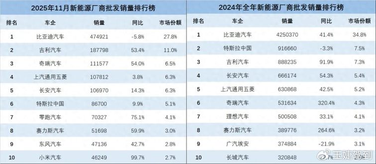 2025年11月新能源车企销量榜单正式发布,奇瑞新能源交出亮眼成绩单:乘联会数据显示,奇瑞汽车以111,577辆的批发销量位列新能源行业第三,同比增长54%,较2024年行业第六的排名实现跨越式提升,销量超越特斯拉中国、长安汽车、上汽通用五菱,仅落后于比亚迪与吉利汽车。