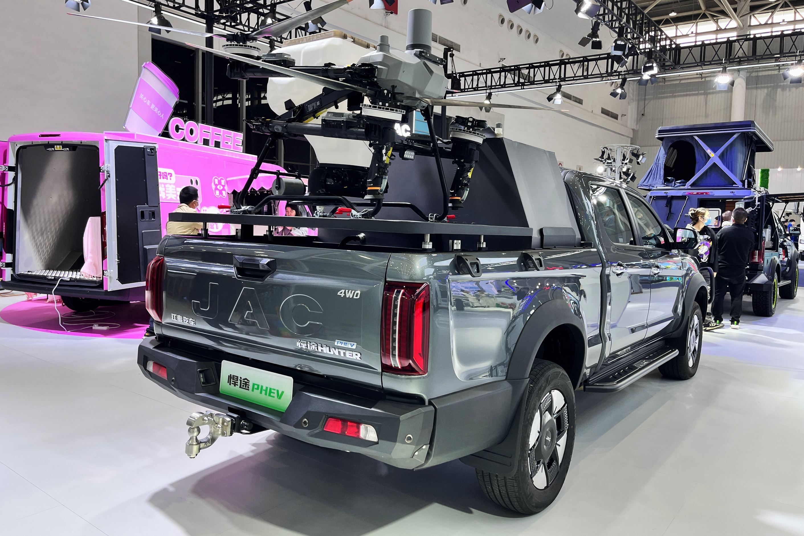 让科技真正扎根田间地头,是推动现代农业升级的关键一环。面对传统植保作业中长期存在的作业半径受限、能源补给不便、设备协同低效等痛点,江淮悍途PHEV植保无人机改装车精准出击,凭借其“千扭电混”的硬核实力与全场景化适配能力,正成为智慧农业领域的一支革新力量,重新定义“农田上的全能伙伴”。