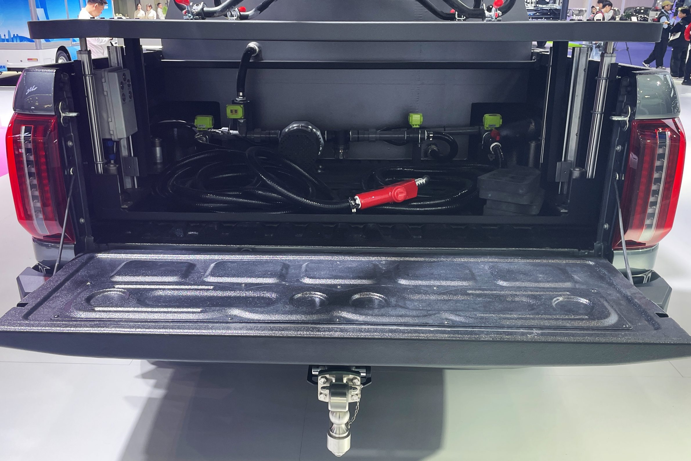同时,车辆集成了970升超大容量水箱与350瓦电控自动水泵系统,支持每分钟80升的大流量注药与野外自吸上水功能,为T100等大型植保无人机加满药液仅需约2分钟,减少了配药、加药的繁琐流程与时间损耗。