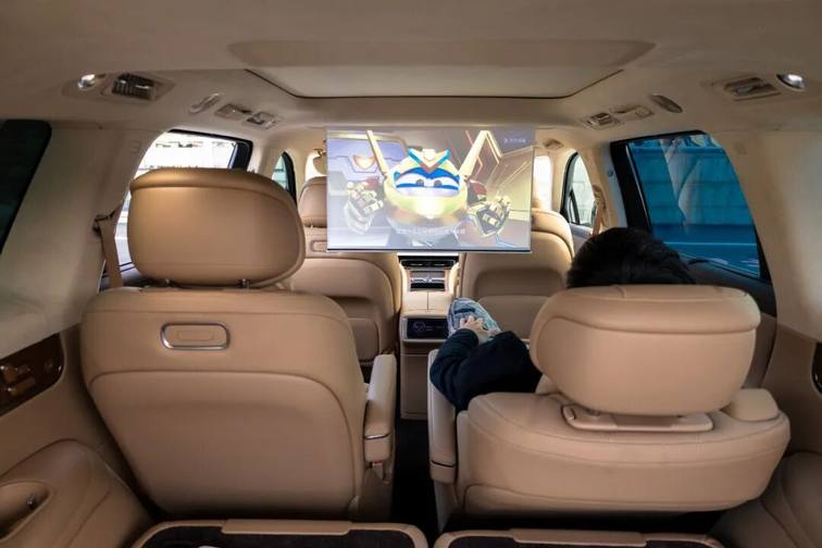 一天的“奔波”后,大家都稍显疲惫,好在问界M9副驾后排可选配零重力座椅,一键展开后可以带来121°腰部零压角和136°腿部零压角,妥妥的头等舱享受。如果你坐在后排感觉无聊的话,只需要一句“小艺小艺,打开后排座椅加热、按摩,打开影院模式”,紧接着车内瞬间变成了一个电影院,车规级投影巨幕加上25个扬声器,这享受绝了。