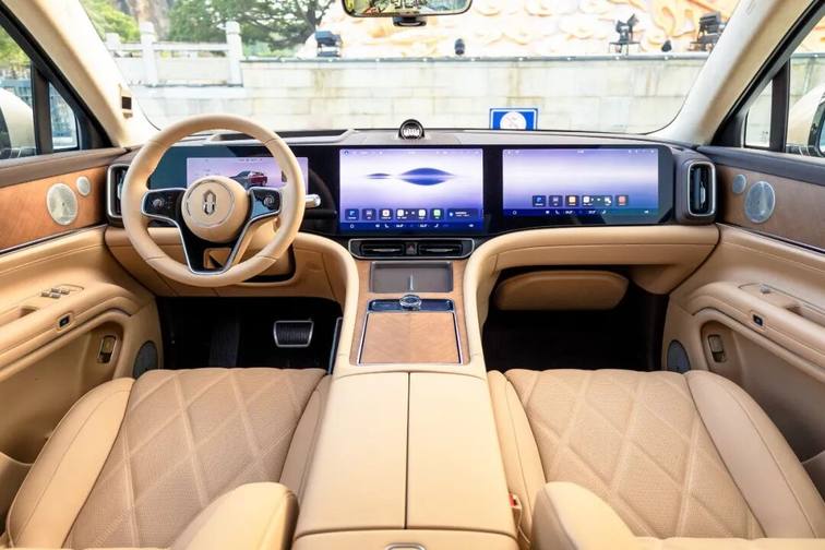 正如问界M9的工匠品质,车内双环抱式座舱设计将未来科技与中正奢华风格完美融合,整体环抱线条从中控台向两端延伸至门板,带来大视野大享受。包括一体环宇三联屏,也不遮挡视野,从这些细节都能看出问界M9在设计上的用心。