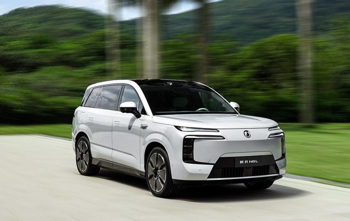 采用前双叉臂式后五连杆式独立悬架的腾势N8L,采用的是2.0T+三电机组成的插混系统,CLTC纯电续航230公里,亏电油耗百公里只有6.1L,满油满电综合续航1300公里,既支持快充也支持对外放电。