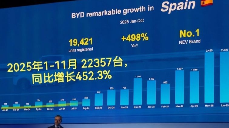 比如,比亚迪的全球销量将在2025年创下新高,突破460万辆的年销量目标基本板上钉钉。2024年1-11月批发销量为374万辆,2025年1-11月批发销量为413万辆。从零售销量来看,2024年1-11月为331.5万辆,2025年同期为314.4万辆。也就是说,比亚迪在中国市场的销量相比去年是降低的。但这都没什么关系,因为战略调整之后,海外市场的增长非常明显。