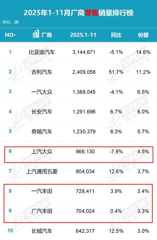 而如果从汽车集团的角度来看销量,2025年相比2024年的变化也不大。