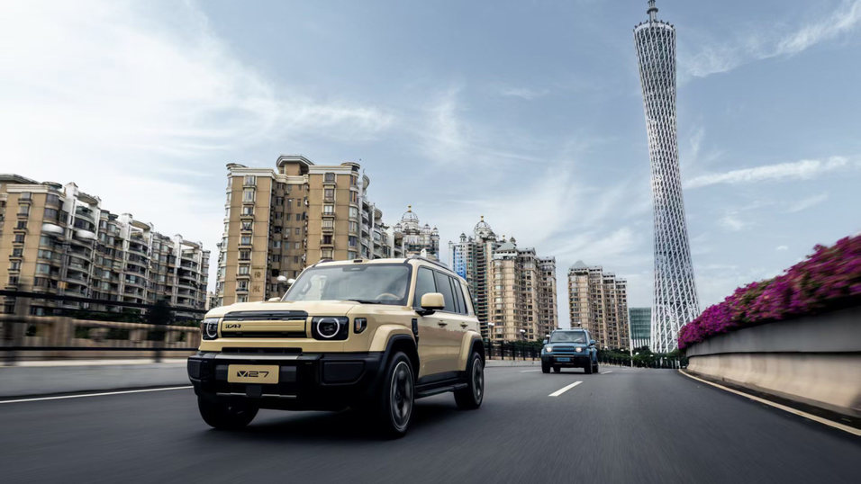 产品定义上,V27的"方盒子"造型、69.9%得房率、1357mm车内净高等指标,瞄准的是家庭用户对空间实用性的核心诉求。455马力、5秒级加速的性能参数,则试图在"家庭"与"硬派"之间找到平衡点。值得注意的是,V27将全系标配七气囊,并满足中欧双五星安全标准,这在该价位段的硬派车型中并不常见,显示出安全性能作为差异化卖点的策略考量。
