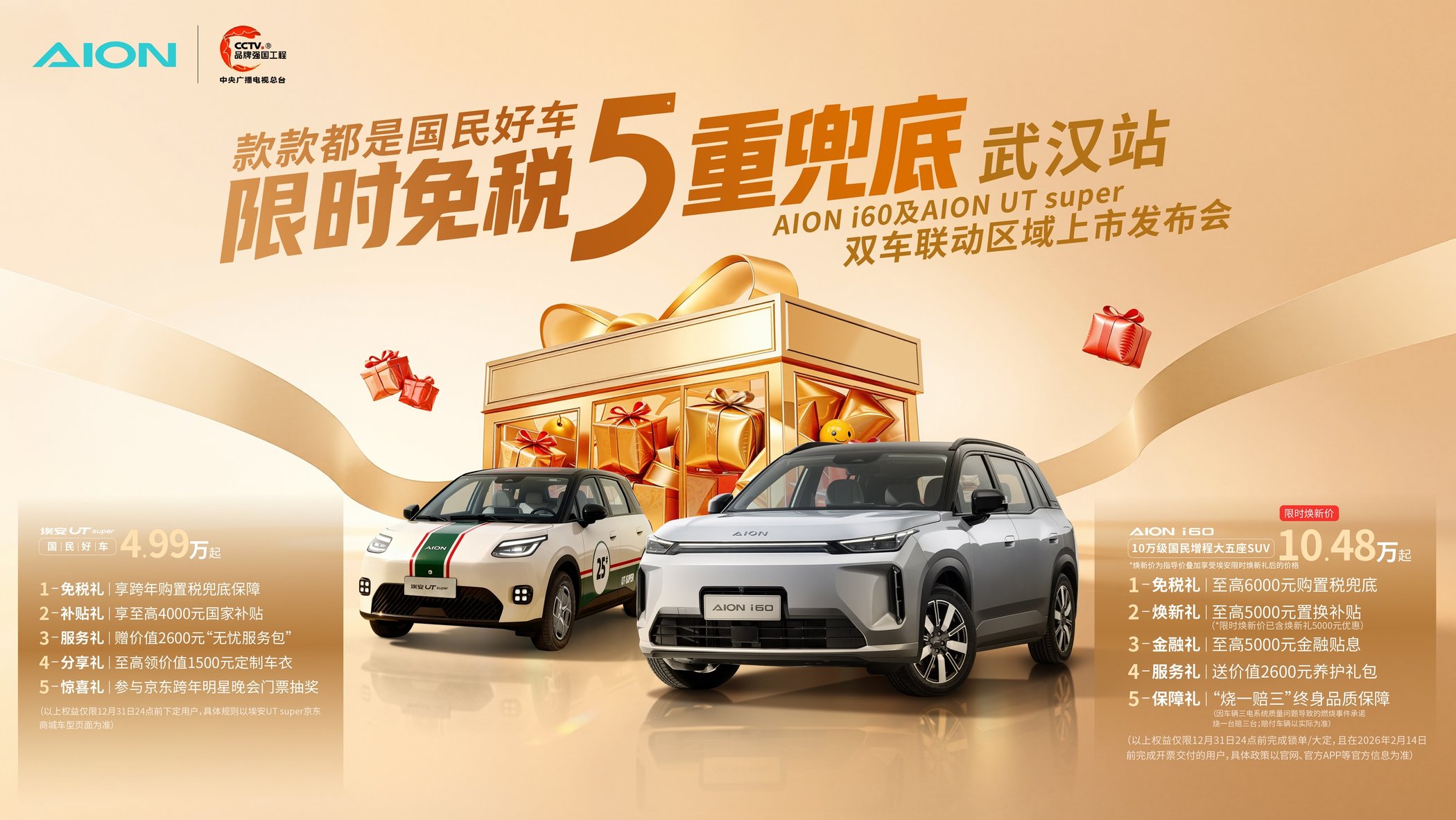 【有车开车资讯】2025年12月20日,广汽埃安"AION i60 & UT Super双车区域上市发布会"在武汉龙湖滨江天街1F中庭璀璨启幕。本次发布会以"款款都是国民好车 限时免税5重兜底"为主题,为江城消费者带来了一场集科技、时尚与实惠于一体的汽车盛宴。