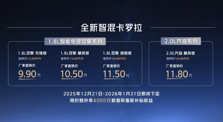 售价9.9万元起,全新智混卡罗拉焕新上市