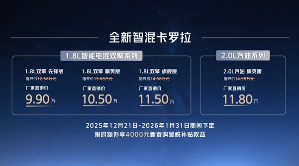 售价9.9万元起,全新智混卡罗拉焕新上市