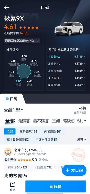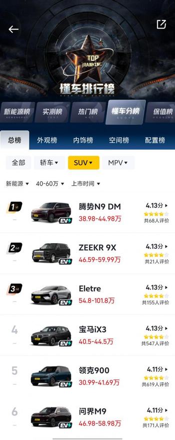 最近极氪9X拿下汽车之家“大型SUV”口碑榜第一,以及懂车帝“40-60万级”关注度榜单第一,这事儿值得细品。