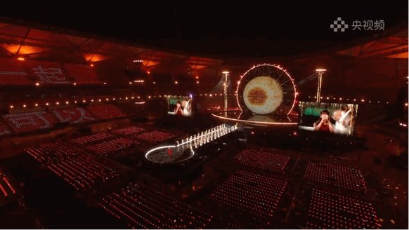 光,也是这场叙事中无声的语言。灯光总监董江从鸿蒙系统的开机动画中汲取灵感,将极具辨识度的“星环”造型贯穿整个场馆空间。设计团队不仅用数百台灯光设备在舞台上空构建了一个直径31米的超级光环,更在体育场内竖立起8组高达24米的立体灯光塔,让每一位观众都被笼罩在“在一起”的视觉叙事之中。据总导演田梅介绍,那打动了无数网友、点缀在观众席上的四万盏灯球,并非轻易铺就的背景,而是历经超百位工人三次接力安装、反复调试才得以呈现的呼吸光海。最初,这一设计曾因执行难度而面临调整,但在总导演田梅的坚持下,最终被完整保留。在她看来,这片星海是对盛典主题内核的生动诠释:“‘在一起,就可以’不仅是一句口号,更是对这个时代最温暖的注脚。它告诉我们:再遥远的梦想,也终将在并肩同行中,变得触手可及。”随着节目播出,灯球呈现出“在一起,就可以”“鸿蒙星光盛典”等字符,明亮而浪漫。四万星光分散在每一张座椅上,如同散落在千行百业、千家万户中的每一个开发者与用户;它们又能连成一片星海,展现出“在一起,就可以”的力量。