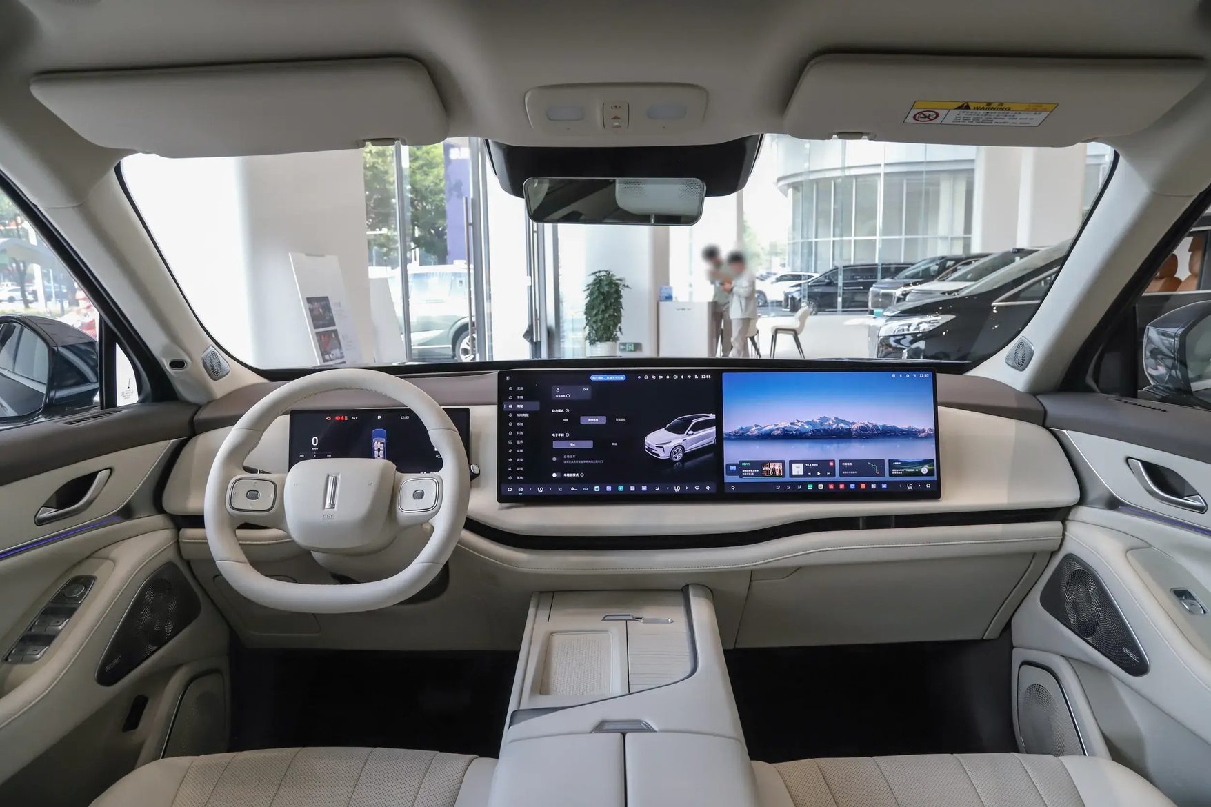 内饰方面,新车提供棕米、黑橙、米黑三种基础配色,以及黑武士专属的全黑内饰,全系标配15.6英寸2.5K中控屏+副驾娱乐屏组成的双联屏,配合12.3英寸全液晶仪表和29英寸HUD抬头显示,形成四屏交互。