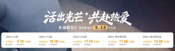 长城欧拉5这次一共推出五款配置,建议零售价为9.98万元-13.38万元,算上2000元订金抵5000元购车尾款的“订金礼”,以及至高5000元的厂家置换补贴“换新礼”后,长城欧拉5的限时换新价仅为9.18万元-12.58万元!不仅如此,还有金融礼、升级礼、新潮礼等多维权益,并特别设置了跨年购置税补贴,为政策切换期下定并锁单的用户扫清后顾之忧(480km Air版除外),这波操作,诚意直接拉满。
