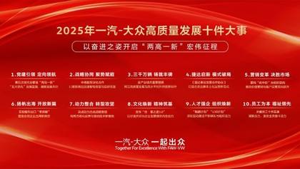 一汽-大众就是其中代表。不久前,一汽-大众正式发布2025“高质量发展十件大事”。这份沉甸甸的文档不仅记录了一家拥有34年历史的合资领军者如何在激烈的市场搏杀中稳住阵脚,更深刻揭示了这家标杆级的合资企业如何通过一系列自我革新完成了从“稳态”向“敏态”的高质量一跃。