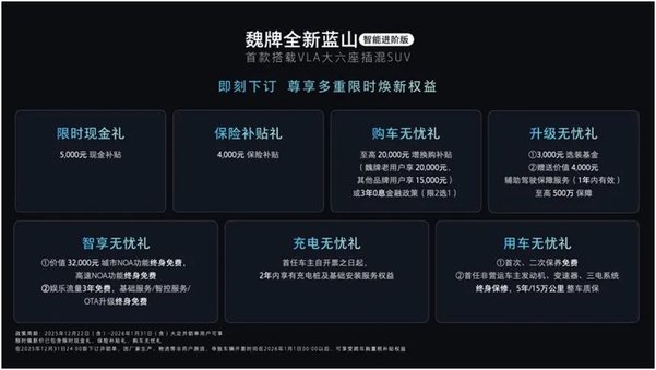 为让更多用户轻松拥有“为爱进阶”的出行体验,魏牌全新蓝山智能进阶版同步推出诚意十足的购车权益: