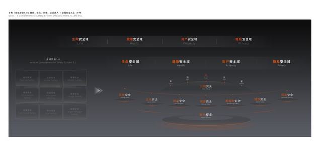 作为行业安全技术的先行者与引领者,吉利在“全域AI”技术体系的赋能下,以“AI为纲责任为本”,基于原有的“全域安全”技术体系进阶打造“全域安全2.0”技术体系。结合智能时代的安全新需求和新挑战,“全域安全2.0”技术体系秉持“以人为尊”理念,通过技术升级、能力突破与范式创新,将侧重“整车安全”的视角升级为“人-车-路-云-星”的生态视角,旨在贯穿用户出行全场景、覆盖出行全领域、联动出行全生态;并以“生命零伤亡、健康零危害、财产零损失、隐私零泄露”四大安全愿景为指引,逐步构建的一套为消费者提供全面的安全保障技术体系。
