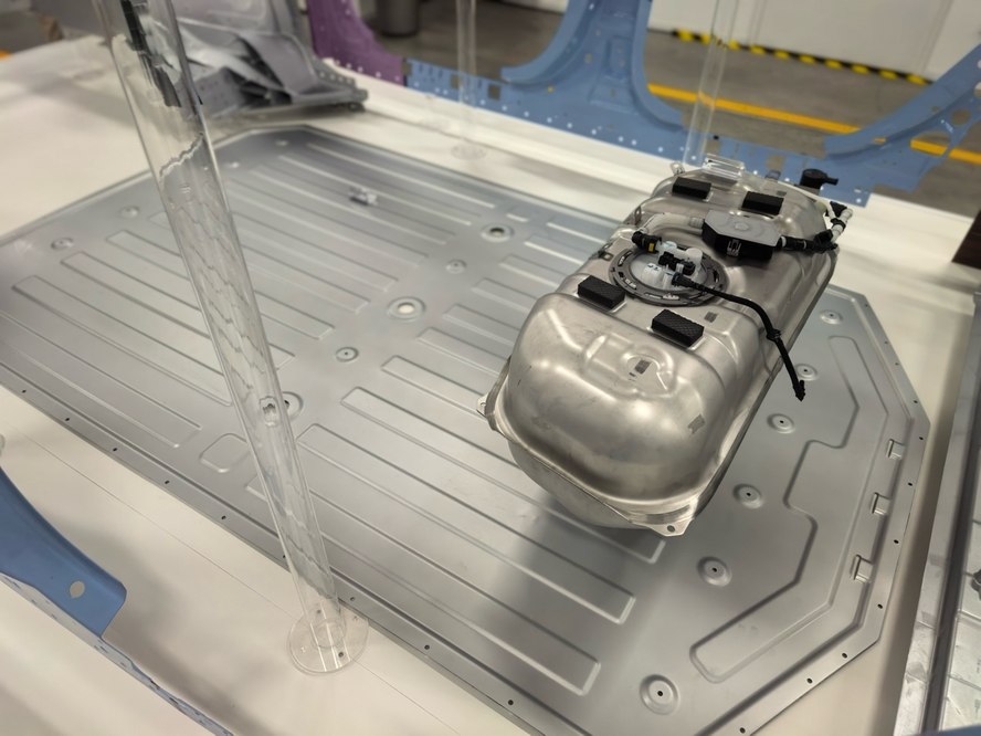 说到最后的研,当前两者都无法满足的时候,理想自己的研发团队就会自研材料,以油箱为例混动汽车的油箱主要是高压油箱,采用高性能不锈钢替代传统树脂材料制造油箱。但即使是采用了高强度的304不锈钢材料,在复杂路况下,油箱也会有被异物穿刺的风险,当理想提出研发强度更高的产品时,得到的是多家材料企业的拒绝,理想就通过自研的形式开发出了超高强不锈钢油箱材料UFHS-X,它相比于传统304L屈服强度提升了100%,抗穿刺能力提升了52%,在极限的碰撞和托底场景中,具备更强的防护能力。