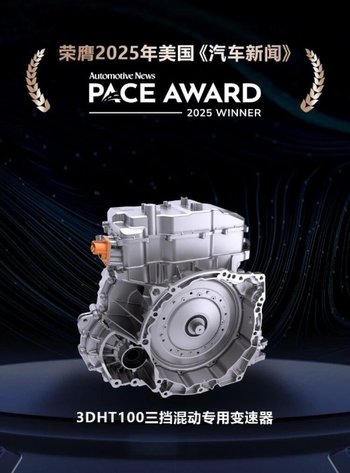 作为浩思动力的核心产品之一,3DHT100混动变速器在2025年代表浩思动力混动解决方案之一荣获美国《汽车新闻》PACE大奖,这一第三方独立奖项被誉为全球汽车界奥斯卡奖。3DHT100的核心技术优势在于行业独创的三挡串并联架构与嵌入式行星齿轮设计,以“全球最小轴向长度”挑战“最大输出扭矩”,以354mm的轴向长度,4920N·m的超大轮端扭矩,实现了行业领先的扭质比:41N·m/kg。