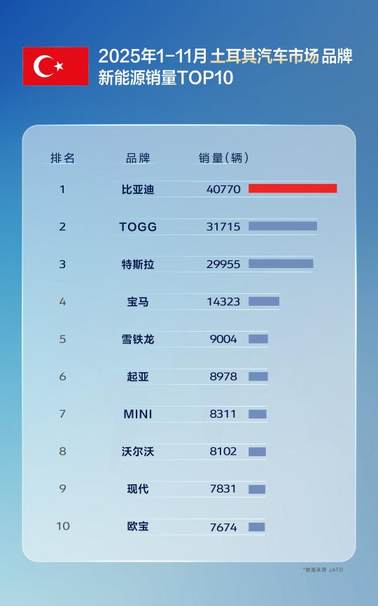 2025年1-11月,比亚迪在英国、德国、意大利、西班牙、奥地利、爱尔兰、马来西亚、土耳其、新加坡、泰国、中国等11个汽车核心国家市场,销量已经全面超越特斯拉。凭借多元化产品矩阵,比亚迪精准契合了全球不同市场消费者的差异化需求。同时,通过推进自建滚装船、本地化生产、构建完善的服务体系等一系列协同举措,为其海外拓展提供了坚实支撑。在这些出海策略的有力推动下,。