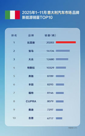 2025年1-11月,比亚迪在英国、德国、意大利、西班牙、奥地利、爱尔兰、马来西亚、土耳其、新加坡、泰国、中国等11个汽车核心国家市场,销量已经全面超越特斯拉。凭借多元化产品矩阵,比亚迪精准契合了全球不同市场消费者的差异化需求。同时,通过推进自建滚装船、本地化生产、构建完善的服务体系等一系列协同举措,为其海外拓展提供了坚实支撑。在这些出海策略的有力推动下,比亚迪出海狂飙全球领跑。