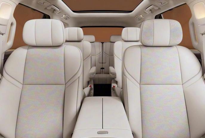 中排提供零重力座椅,通风、加热、按摩等功能应该都不缺,座椅扶手也并非固定式,中央过道的宽度足够。后排座椅同样支持电动调节和加热,空间方面很有可能比理想L9更大。另外,在三排都使用的情况下,尾厢的装载能力也很值得期待。