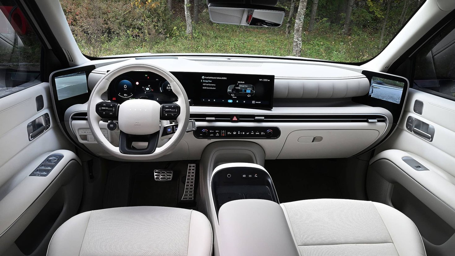 中控台配备了曲面的12.3英寸数字仪表和12.3英寸信息娱乐系统,支持无线苹果CarPlay和安卓Auto,并通过中控台的无线充电功能与智能手机连接。现代还提供了由B&O高端音响系统,配有最多14个扬声器。此外,车辆还配备了12英寸的抬头显示器,将信息投射到前风挡玻璃上,方便驾驶员查看。