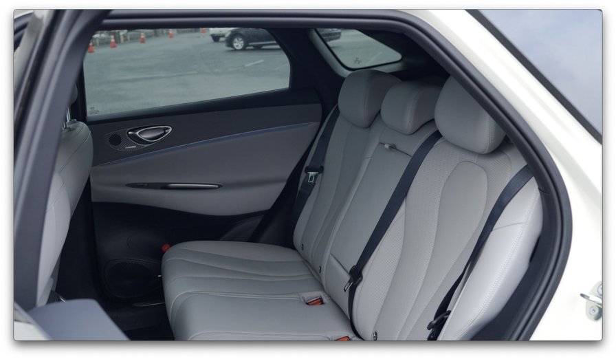 同时,海狮06EV的后排中间地台采用了纯平设计,这一点在全家出行时尤为关键。中间乘客双脚可以自然放置,配合宽裕的横向空间,即便是三个人同乘后排,也能保持舒适的乘坐姿态。