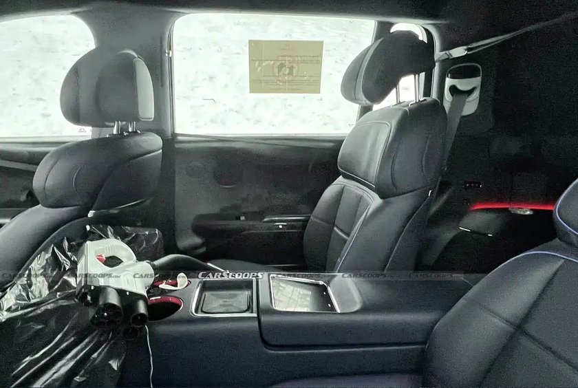 下面一张是二排的照片,这张照片此前就已经曝光了,所以和这次曝光的配色可能不一样,大家可以参考下。整个座椅非常宽厚,应该会以舒适为主。中间还有宽厚的中央扶手,集成了杯架、无线充电板以及功能控制屏幕。而从这张图片猜测,新车可能会有4座版本。