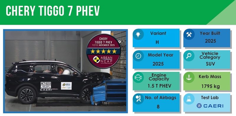 近日,奇瑞汽车在东盟新车安全评鉴(ASEAN NCAP)中交出了一份震撼行业的答卷:瑞虎7 PHEV以 94.68分 的综合得分,一举刷新该机构成立十余年来的最高分纪录。一同参与评测的iCAR V23,也以高分拿下五星,成为东盟地区首款获五星认证的“方盒子”车型。