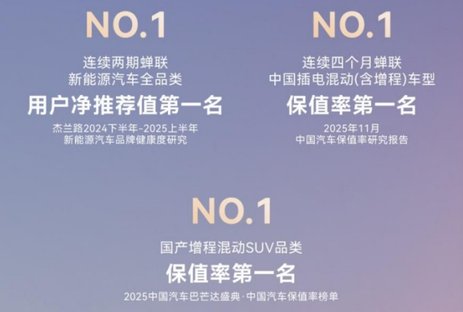 在中国汽车流通协会发布的《2025年11月中国汽车保值率研究报告》中,问界M9已连续四个月蝉联中国插电混动(含增程)车型保值率第一,并在2025中国汽车巴芒达盛典“中国汽车保值率榜单”中位列国产增程混动SUV第一,展现50万级豪华车价值新高度。